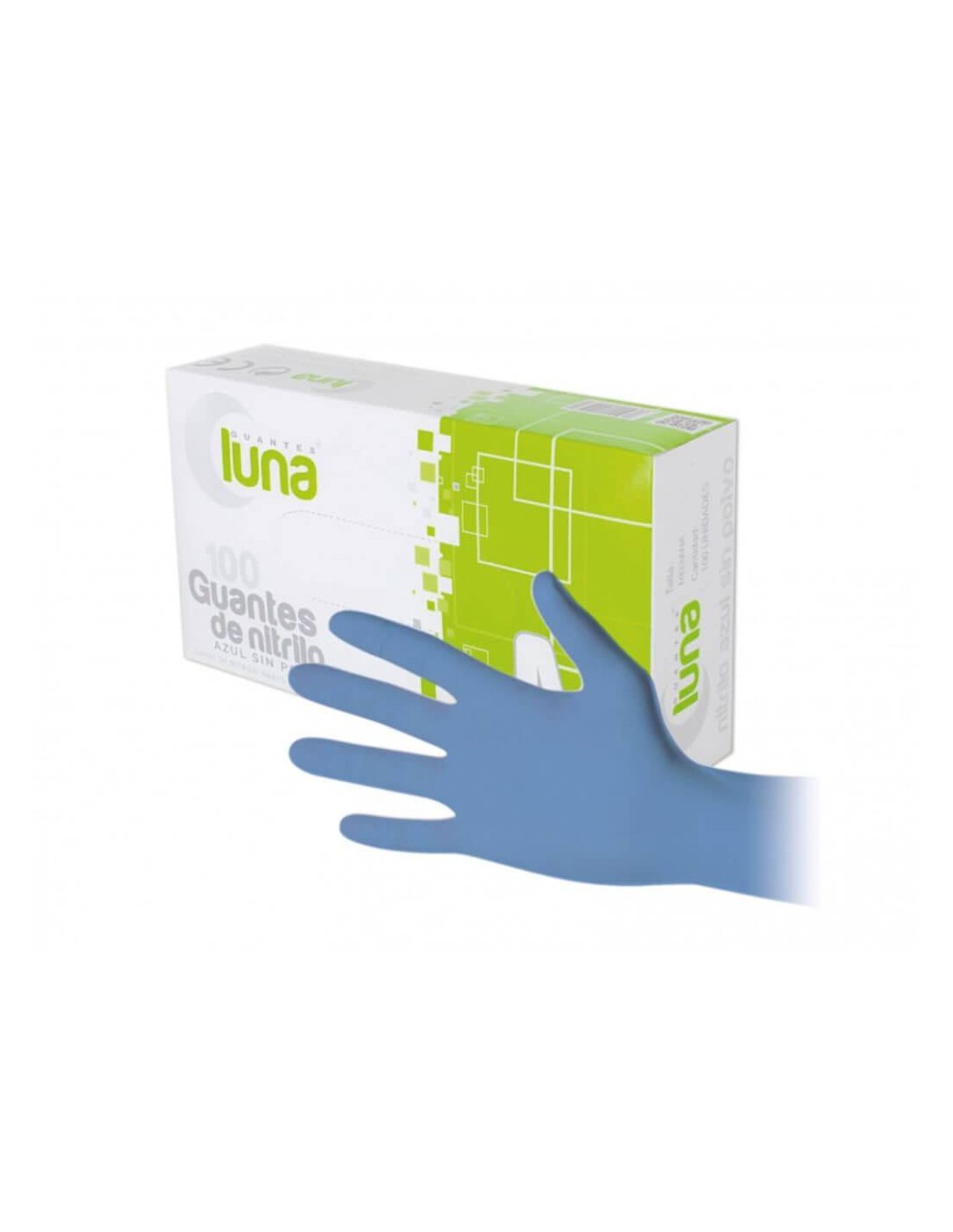 Guante de nitrilo azul sin polvo marca Luna.